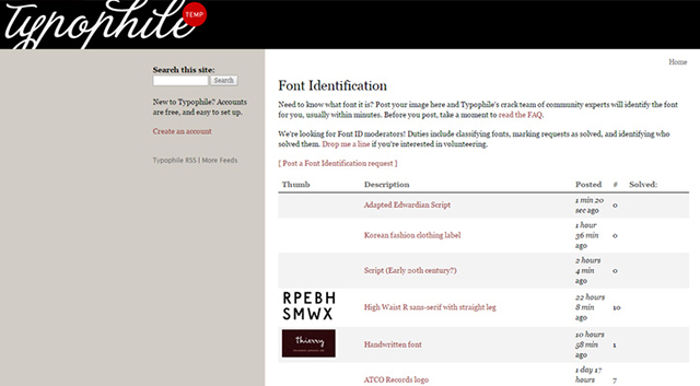 TypeID est la communauté de Typophile, contenant plus de 150 pages d’archives. Si vous avez des difficultés à identifier une police, ce site pourra vous sortir d’affaire.