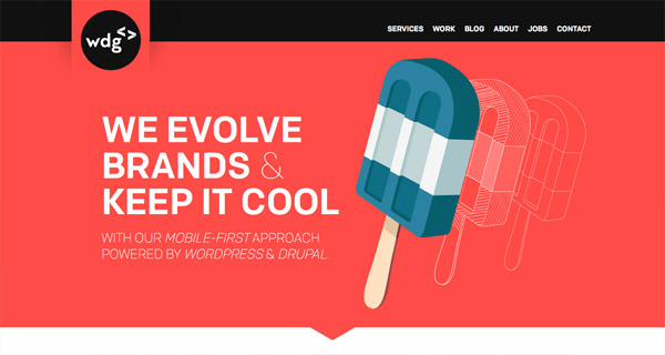 L’utilisation de couleurs primaires ou saturées lors de la création de sites est la conséquence directe de la profusion du design « flat » sur le web. Les couleurs saturées permettent de créer du contraste et de remplacer ainsi les effets de volume et de perspective.